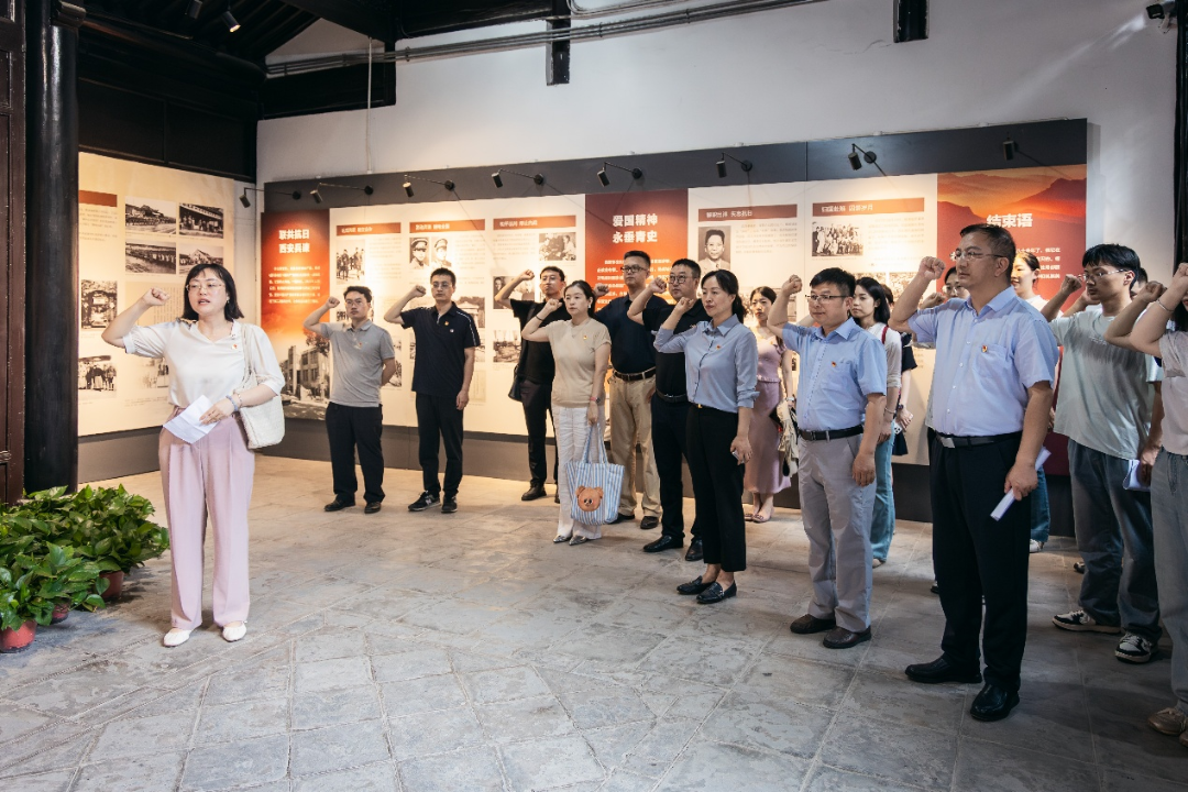 在杨虎城将军故居,全体党员通过珍贵的历史照片、实物和文献,深入了解将军的爱国事迹与赤诚情怀。在庄严肃穆的氛围中,大家深切感受到革命先辈“苟利国家生死以”的崇高精神,并在党旗下重温入党誓词,以铮铮誓言坚定理想信念。